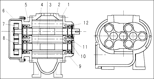 ⑧拆羅茨風機前、后墻板時要注意安全,不要將主軸和從軸上的密封碰壞。然后將主動轉子和從動轉子從機殼取下,拆下來的零件要做好標記。